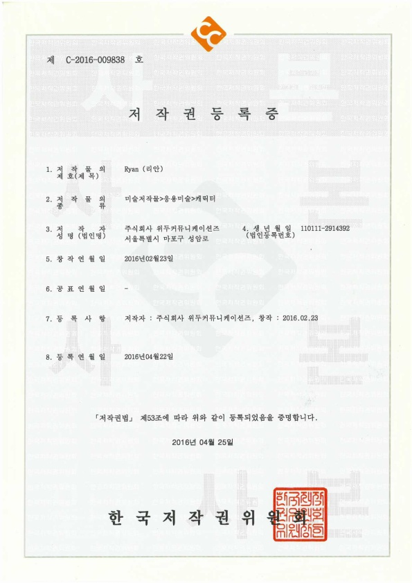 [한국/저작권] 리안 페이지 정보 작성자 WeDu 댓글 0건 조회 6,170회 작성일 19-05-30 19:08 본문 2016-04-22 저작권 C-2016-009838 리안 / 미술저작물>응용미술>캐릭터 List Previous[한국/저작권] 아리스 19.05.30 Next[한국/저작권] 나무트 19.05.30
